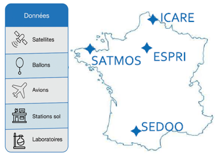 DonnĂ©es : DonnĂ©es aĂ©roportĂ©es (IAGOS), donnĂ©es satellitaires (IASI) sur la concentration gazeuse, donnĂ©es in situ (ACTRIS), donnĂ©es ballons (HEMERA 2020) ou bien encore une banque de donnĂ©es qui fournit des donnĂ©es dâinformations spectroscopiques atmosphĂ©riques (GEISA).