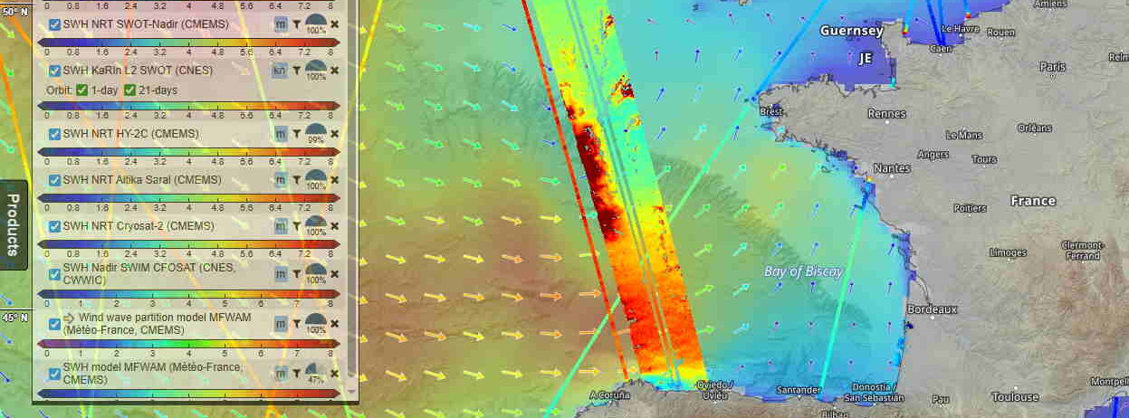 Ces données satellites, quand elles sont disponibles quelques heures après la mesure, sont assimilées dans les modèles de prévision marine de Météo France. Elles servent également à évaluer les hauteurs maximales et extrêmes pour la sécurité maritime, à dimensionner des infrastructures côtières, ou à améliorer les futures prévisions.