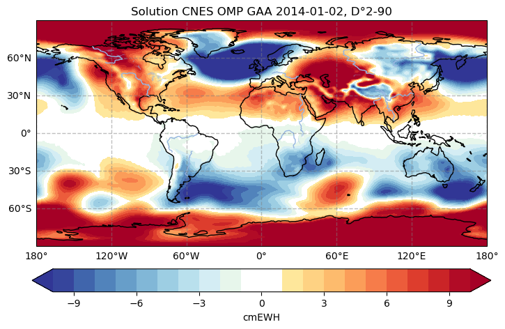 | Résolution spatiale | ≈ 111 km à l’équateur (harmoniques sphériques degré 180) | |