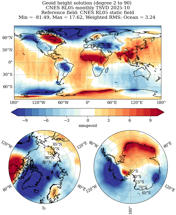 Grilles mensuelles d’anomalies de hauteur de géoïde CNES GRACE/-FO de niveau 2B